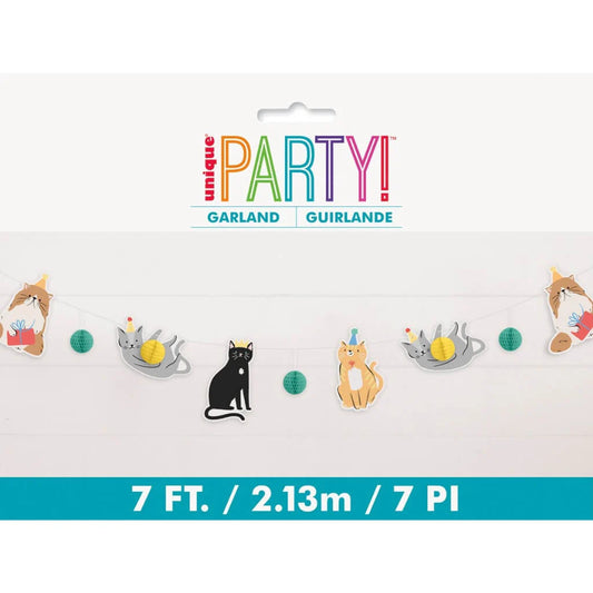 Pawty Animals Cat Cutout Banner with Honeycomb Tissue Balls