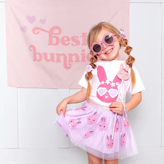 Bunny Bow Sequin Easter Short Sleeve Tutu Bodysuit