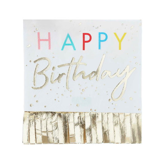 Happy Birthday Fringed Gold Napkins