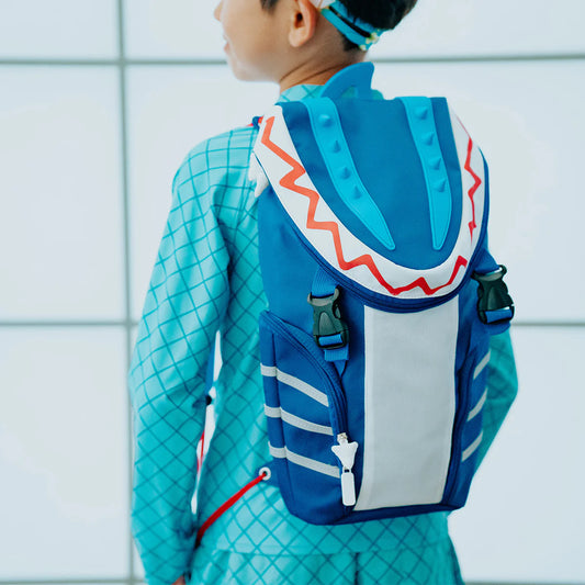 Mochila azul aleta de tiburón