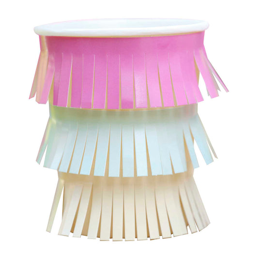 Vasos de papel con flecos y borlas hawaianas