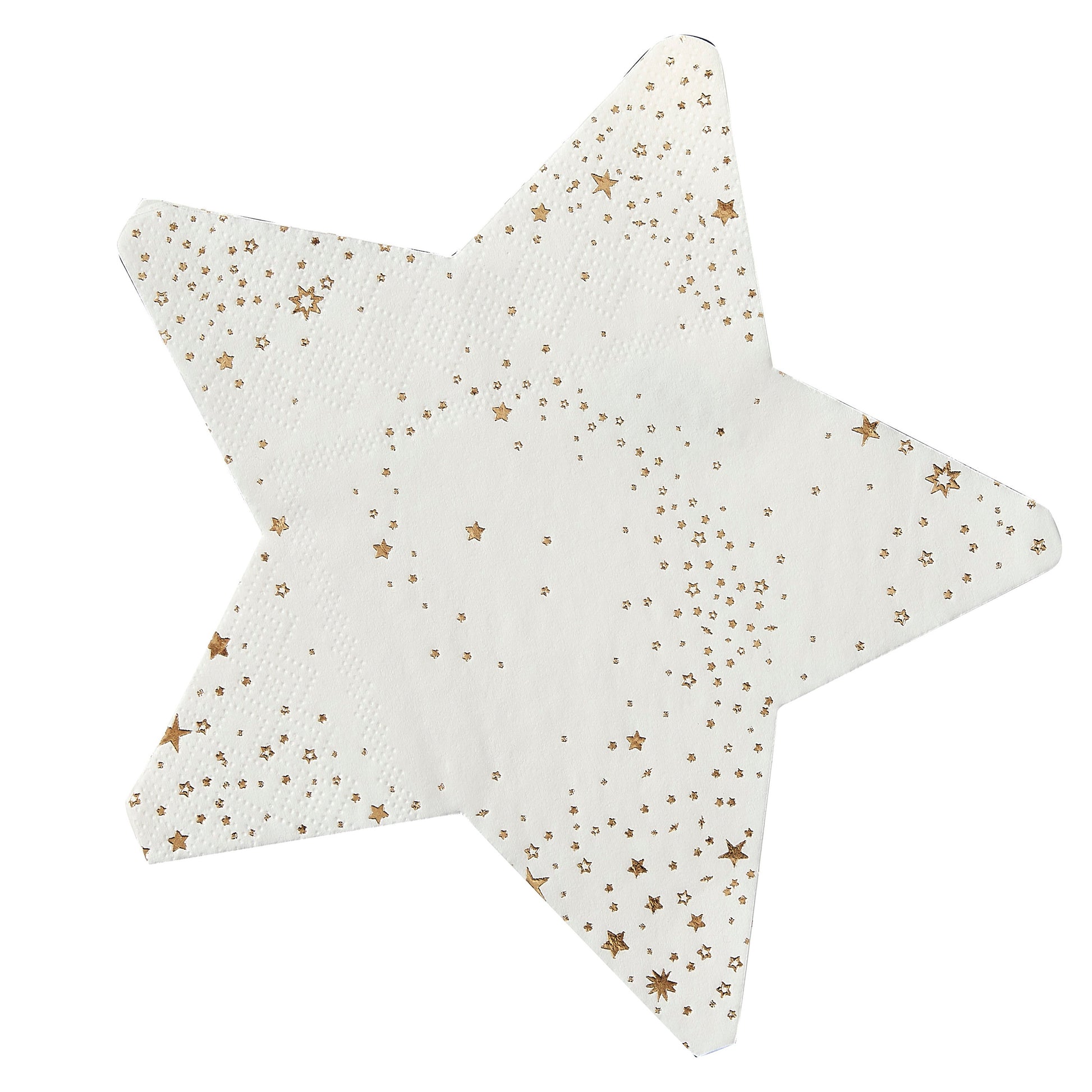 Agregue un poco de brillo a sus celebraciones con estas hermosas servilletas de papel con forma de estrella laminadas en oro.