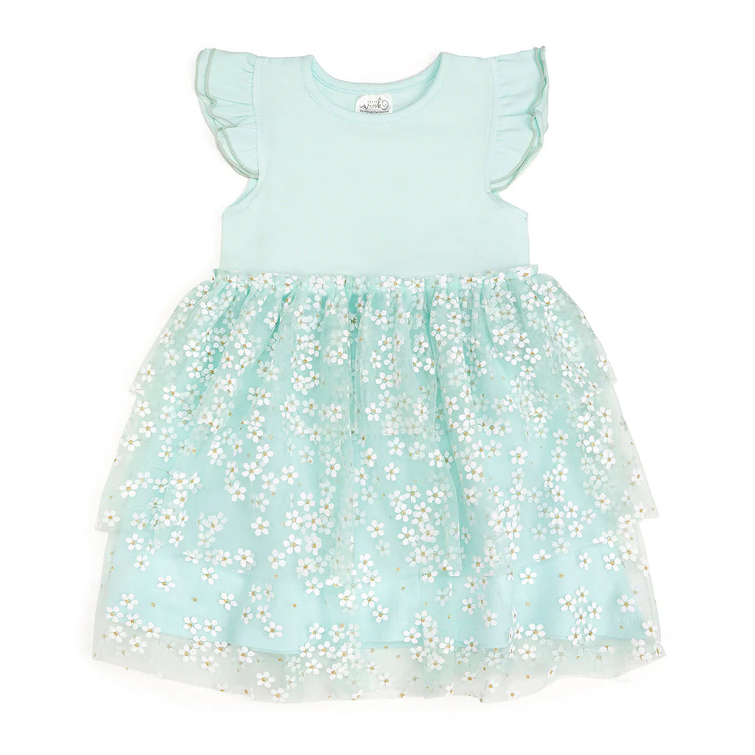 Aqua Ditsy Daisy Easter Tiered Short Sleeve Tutu Dress