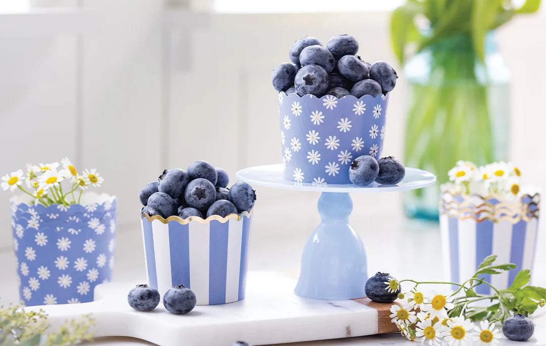 Introducing our Blue Daisy Stripe Foiled Baking Cup! With these beautiful blue daisy spring baking cups, your baked goods will not only look amazing but also have a touch of whimsy. Perfect for adding a playful twist to any baked treat.