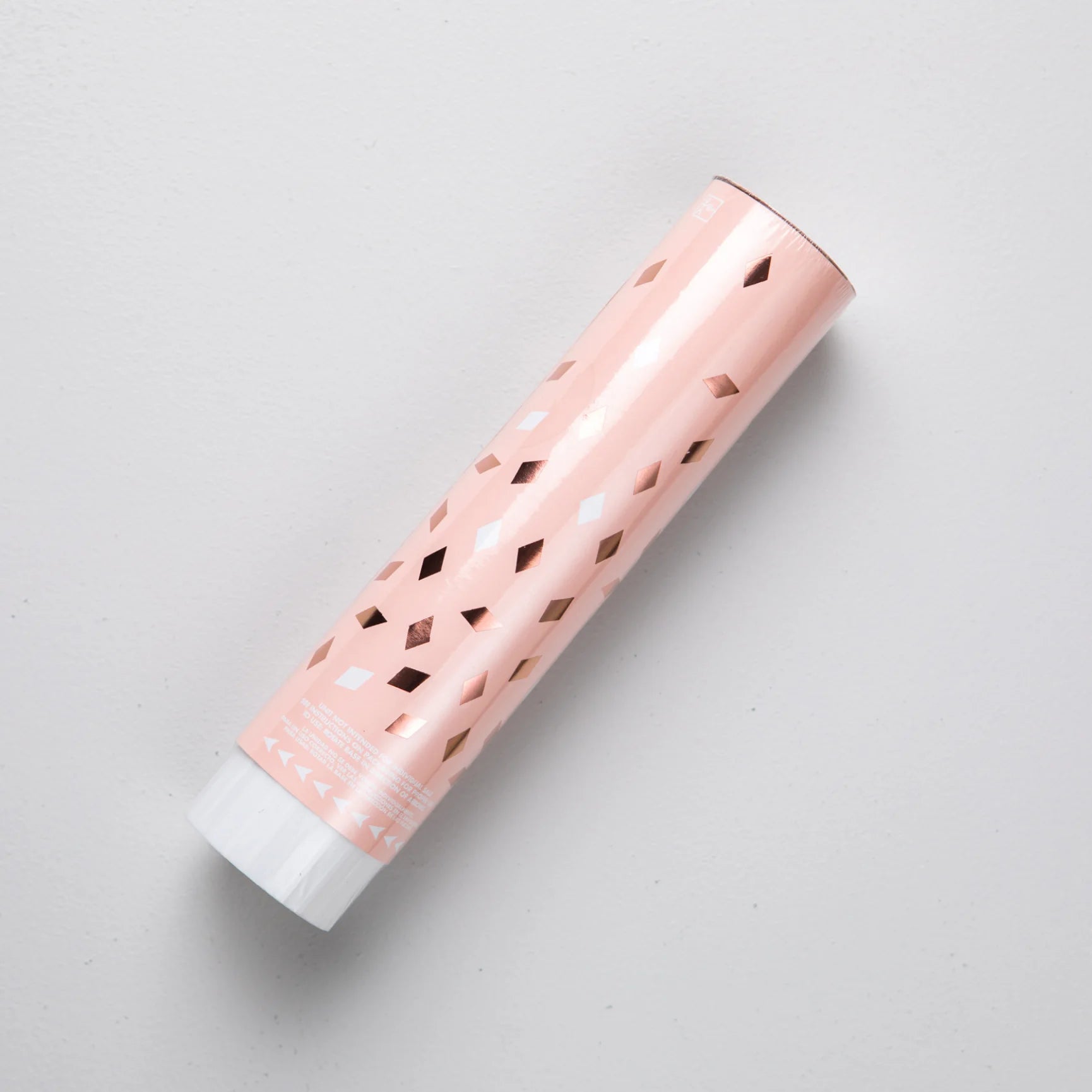 Confeti de papel de seda blanco y lámina de oro rosa. Poppers de 17cm x 4cm