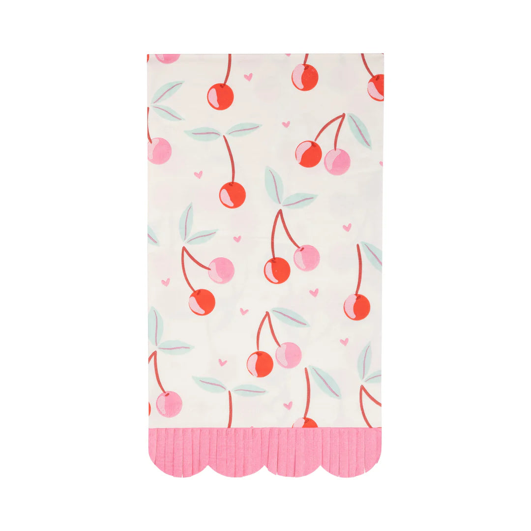 Get ready to add a touch of sweetness to your Valentine's Day celebration with our Cherries Fringe Scallop Guest Napkin. These cherry-themed napkins will bring a pop of color and fun to your party, making your guests feel extra special. Perfect for any love-filled occasion!