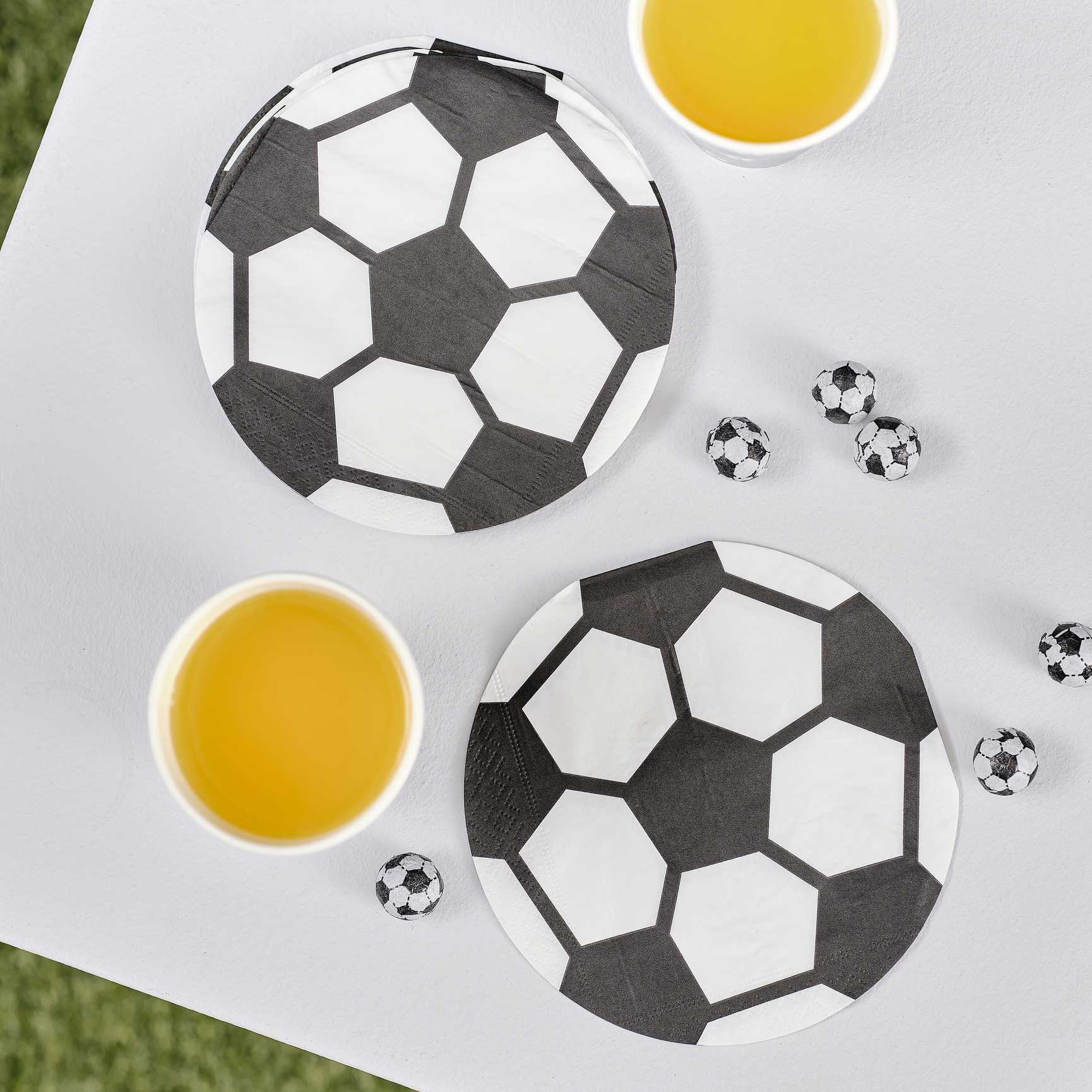 Goal! Decorate your football party with these eye-catching paper napkins. Each pack contains 17 x football napkins measuring 14.5cm in diameter.