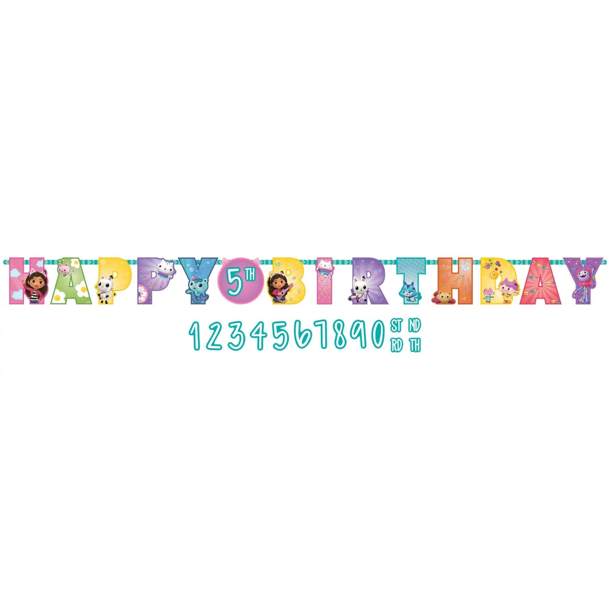 This banner features Gabby's dollhouse characters along with the "Happy Birthday" letters that will give an eye-catching vibe to your little one's party.