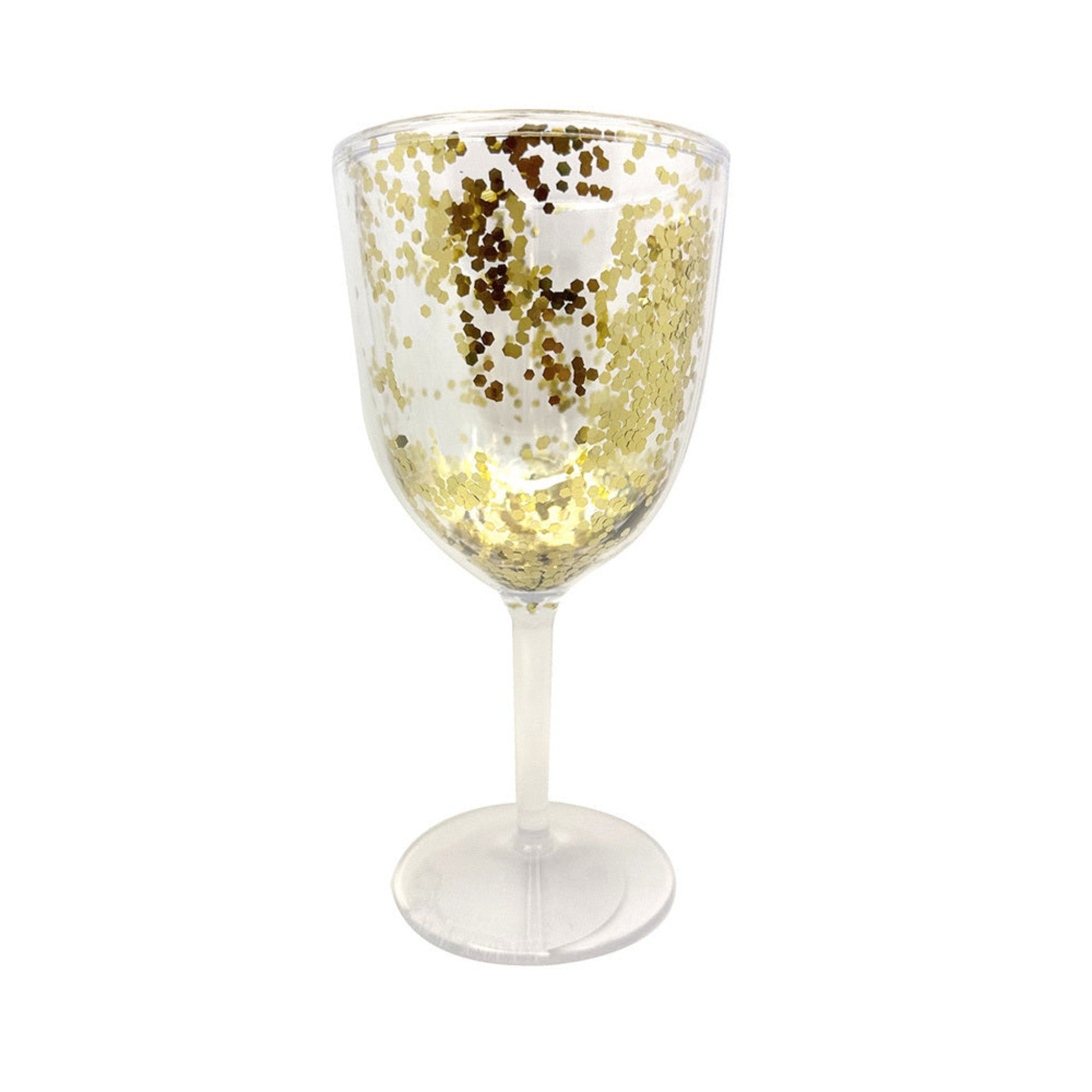 Includes 1 Gold Glitter Reusable Plastic Wine Tumbler