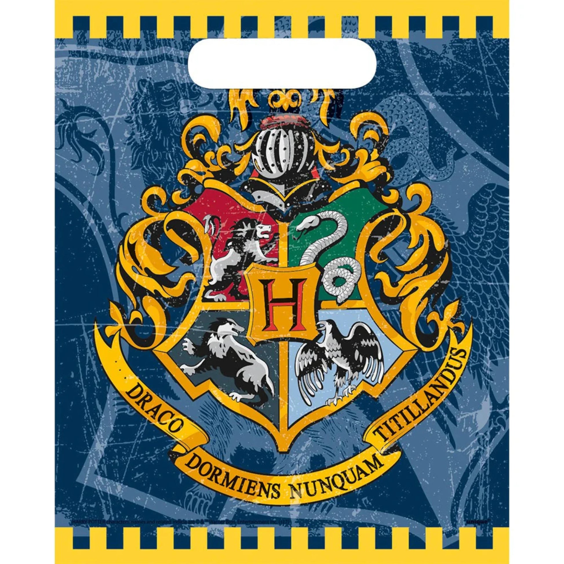 Loot Bags are an excellent way to hold party favors and treats. Plastic Harry Potter Loot Bags feature designs of Hogwarts School Crest printed on the front and backs. Loot bag is and perforated handles make it easy for carrying. Package Includes: 8 Harry Potter Themed Loot Bags.