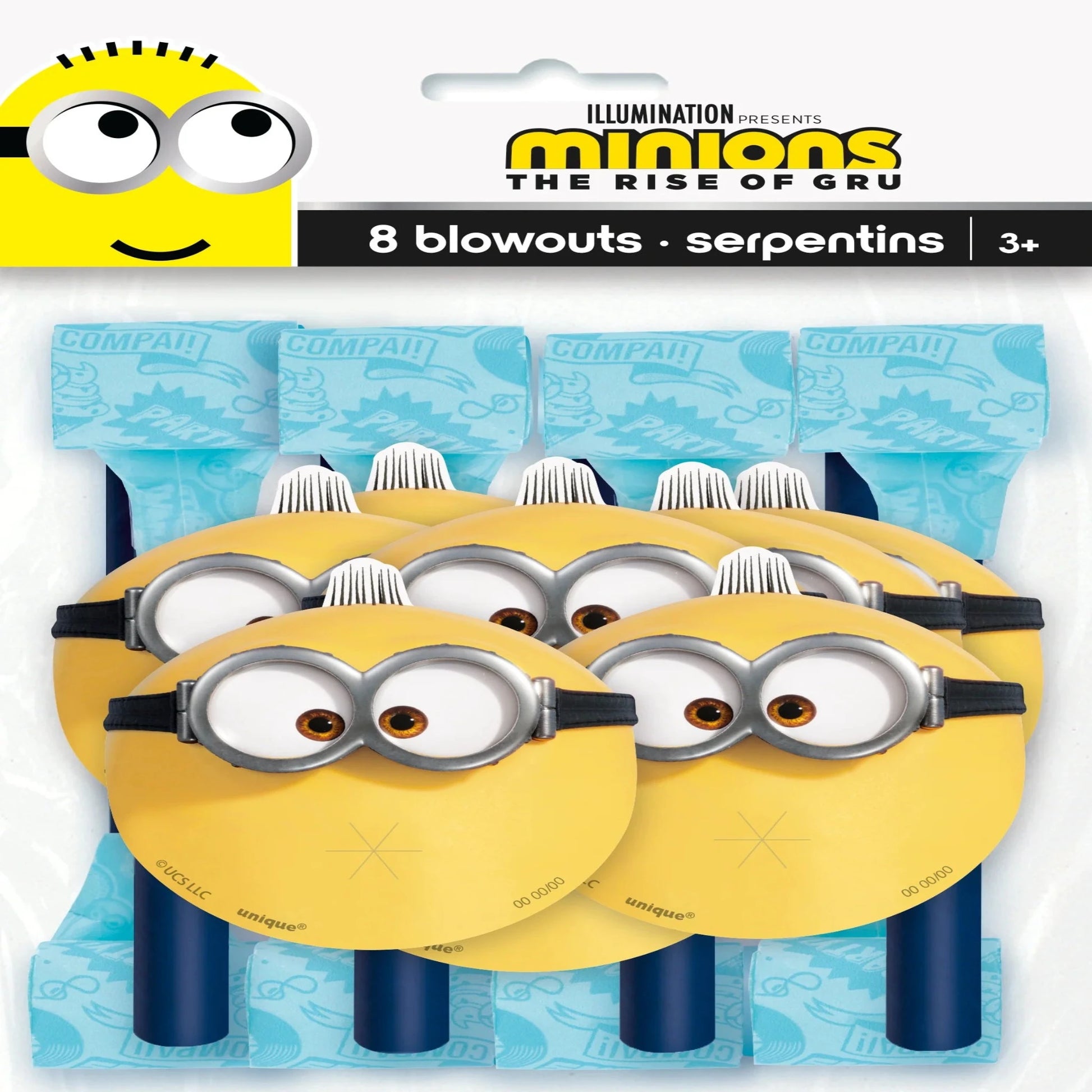 This is a 8 count package of Minions 2 Blowouts
