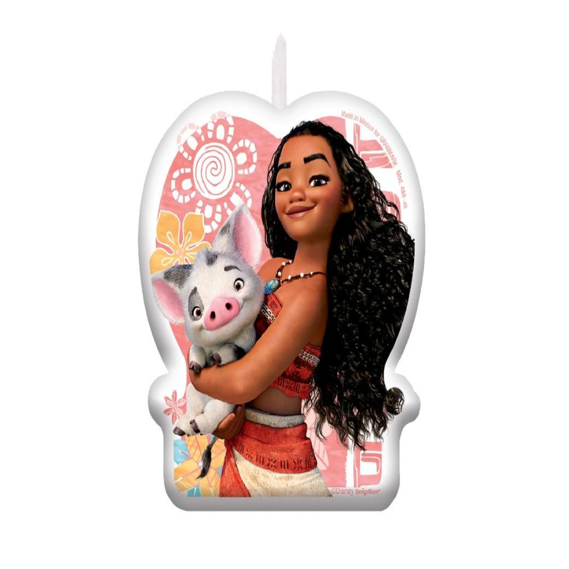 Top off your Moana birthday cake with this large candle featuring Moana hugging Pua.