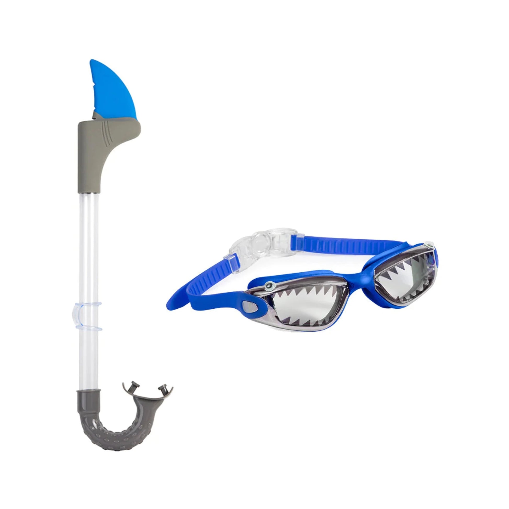 ¡Las aletas no son sólo para los tiburones! Nothin' But Fin Starter Set es perfecto para todos los amantes de los tiburones mayores de 6 años. Nuestras gafas brindan protección UV, antivaho y no contienen látex. Nothin' But Fin Starter Set también incluye estuches protectores para ambos artículos.