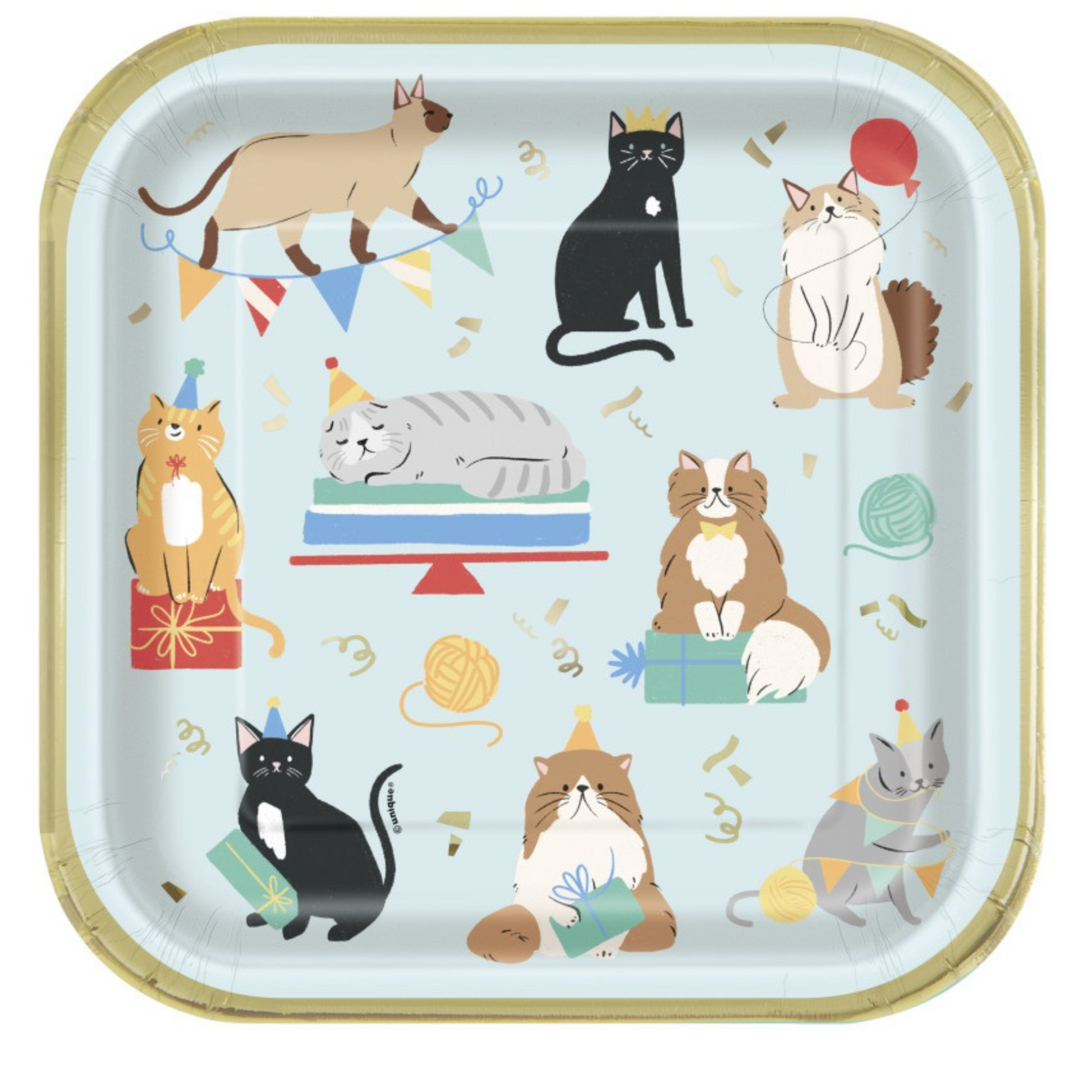 Pawty Animals Cat Square 9" Dinner Plates 8ct