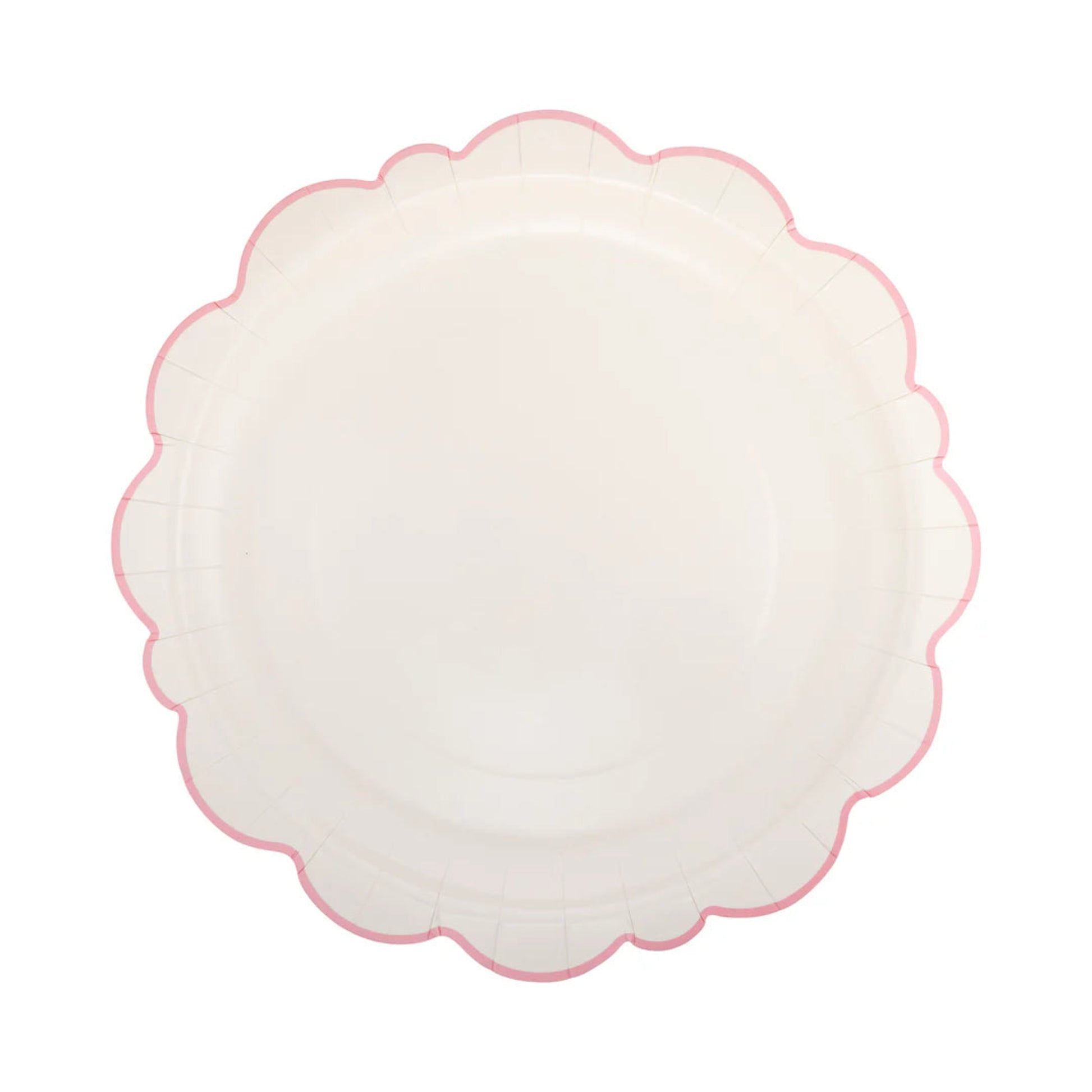 Add a touch of romance to your table with our Pembroke Pink Edge Scallop 12" Plate! Featuring a delicate design, this plate is perfect for Valentine's Day or any special occasion. A charming addition to any collection, it's sure to make a statement with its playful pink edges. Love at first sight!