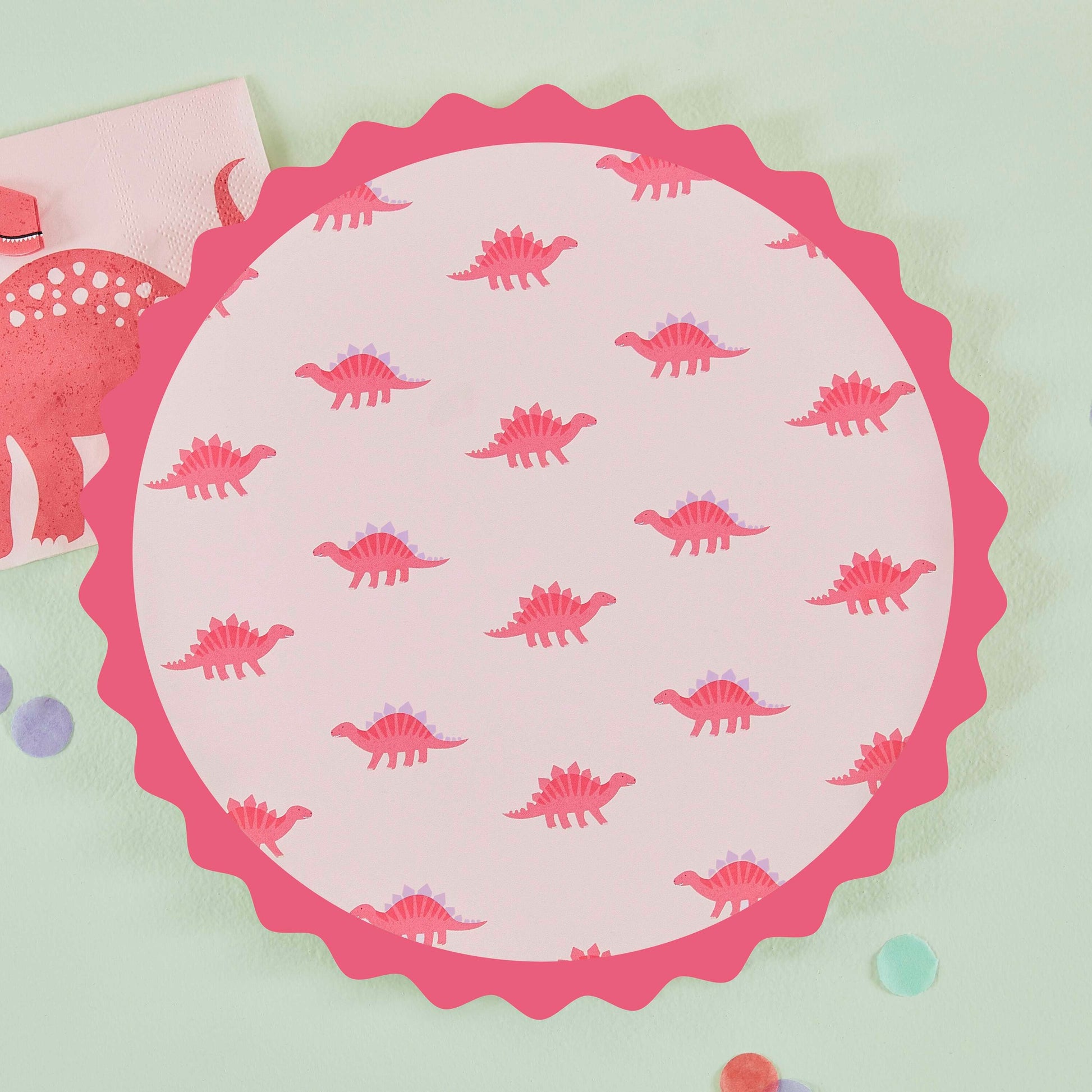 Platos de papel con estampado de dinosaurio rosa, 8 unidades