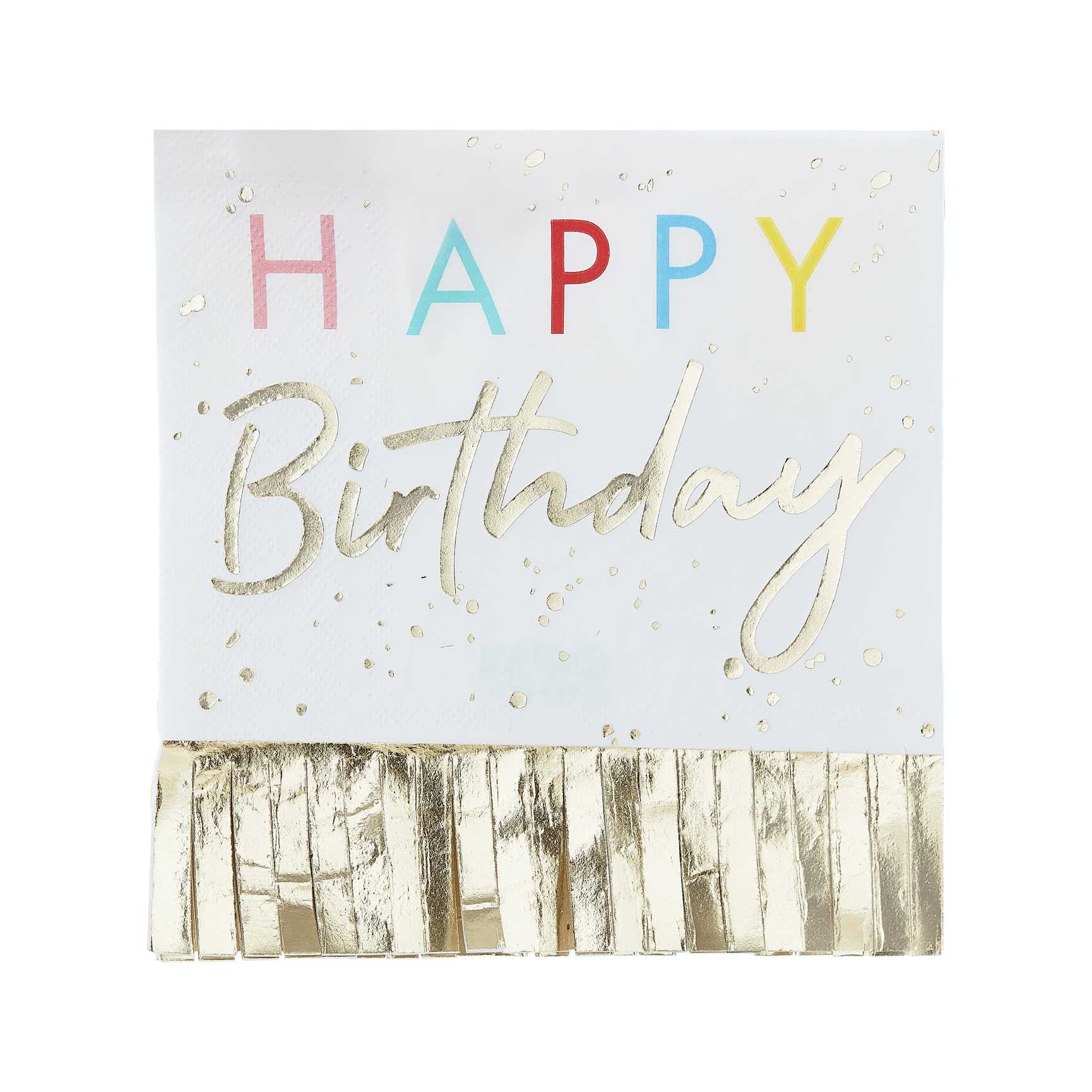 Servilletas doradas con flecos de feliz cumpleaños