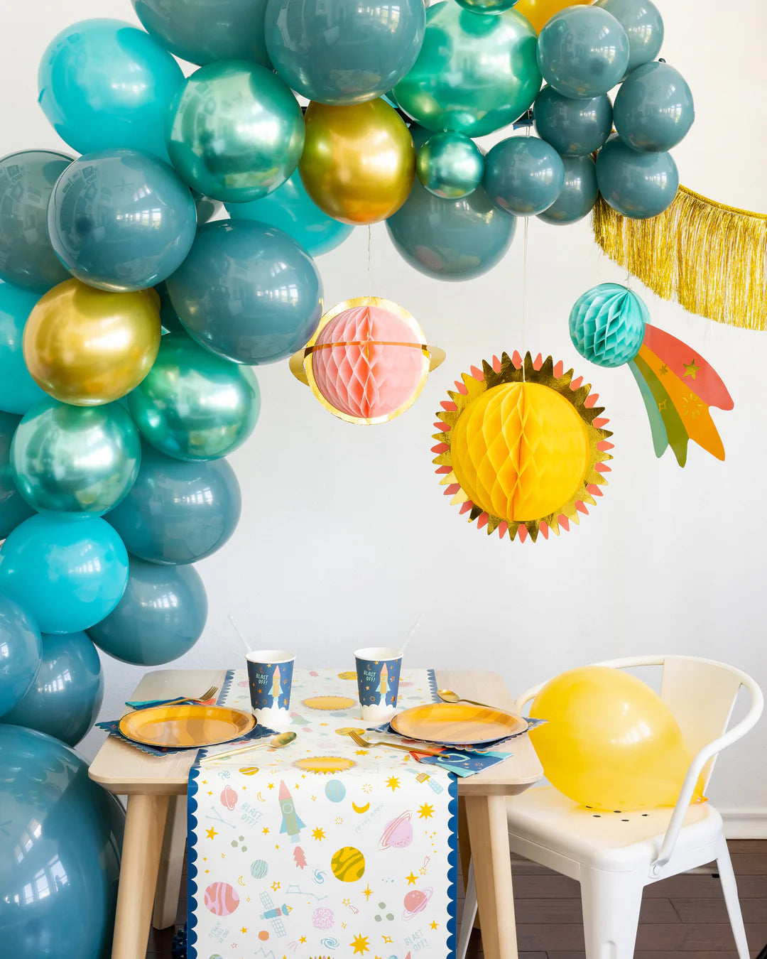 Transform any party into an out-of-this-world celebration with our Space Paper Table Runner. This unique table runner features fun and playful space icons that are sure to add a touch of whimsy to any table setting. Perfect for all your cosmic gatherings!
