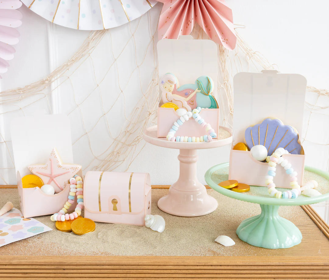 Unleash an ocean of fun with our Treasure Treat Box Set! These treasure chest treat boxes are perfect for any under the sea party. Fill them with your favorite treats and let your guests discover the hidden treasures inside. A fun and unique way to add some excitement to your event!