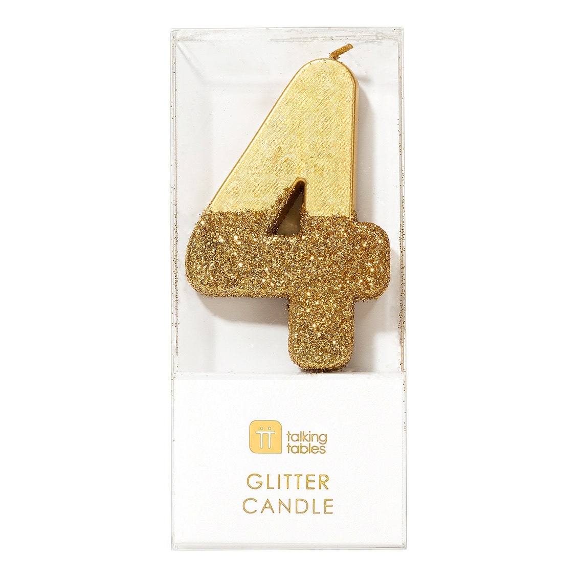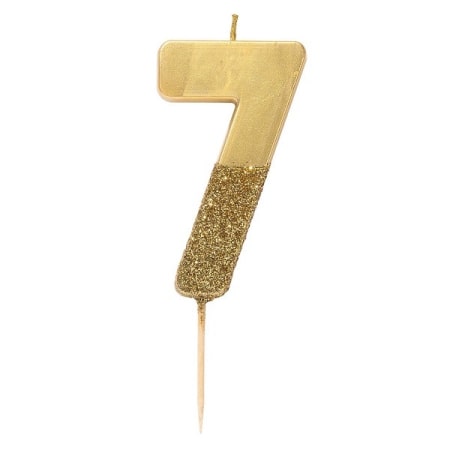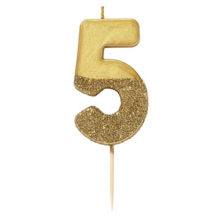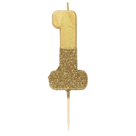 Vela de cumpleaños número dorado bañada con purpurina. Agregue un poco de brillo a su pastel de cumpleaños con esta elegante decoración de pastel con velas de cumpleaños con números. El adorno de pastel perfecto para una celebración de cumpleaños o aniversario.