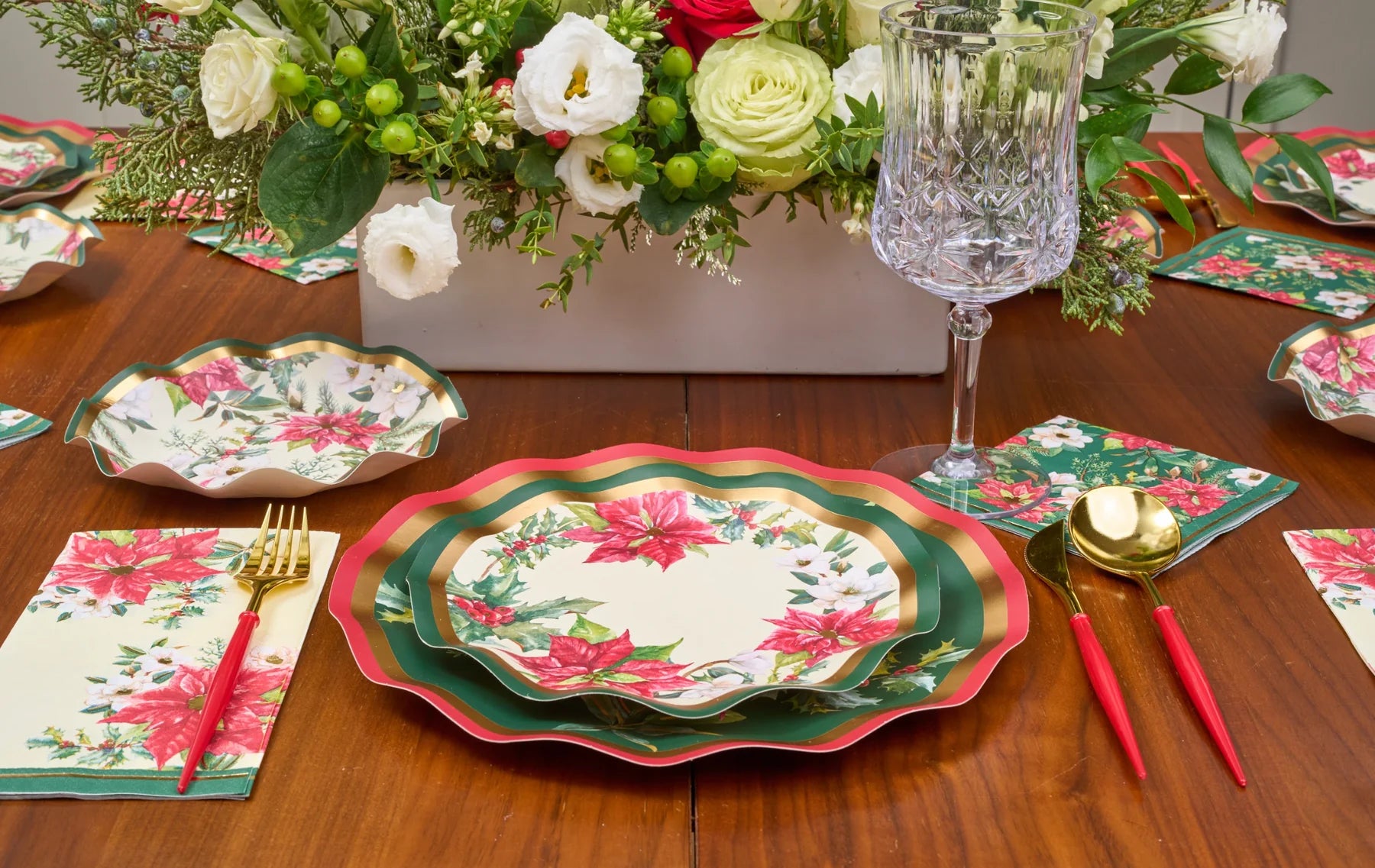 Wavy Salad Plate Evergreen Floral/8pkg
