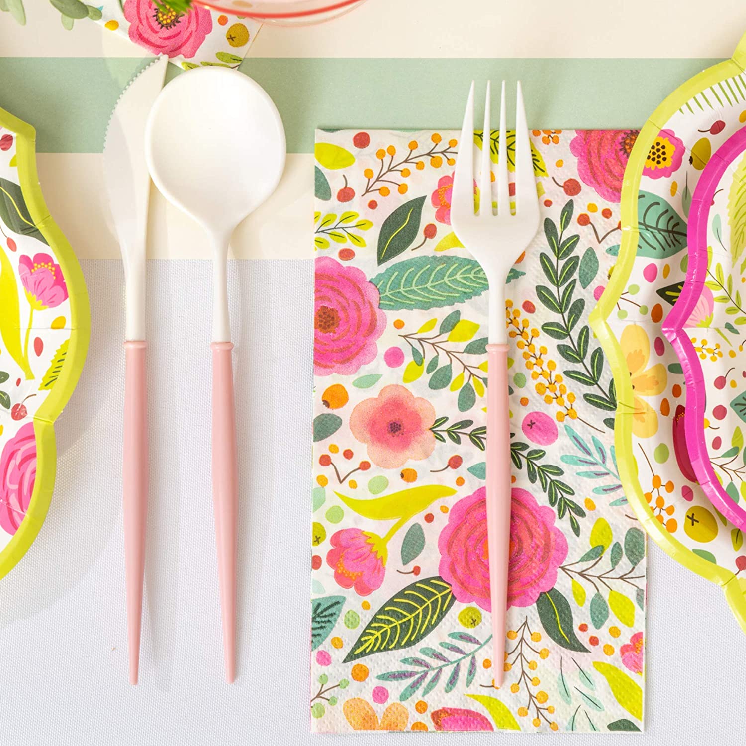 The Bella line of disposable plastic cutlery by Sophistiplate is a gorgeous and sleek modern design that elevates any table, place setting, or event. Perfect for Birthday Parties, Date Night, Family Gatherings, Holidays, Parties, BBQ's, Outdoor Entertaining, Kids Parties, and more.