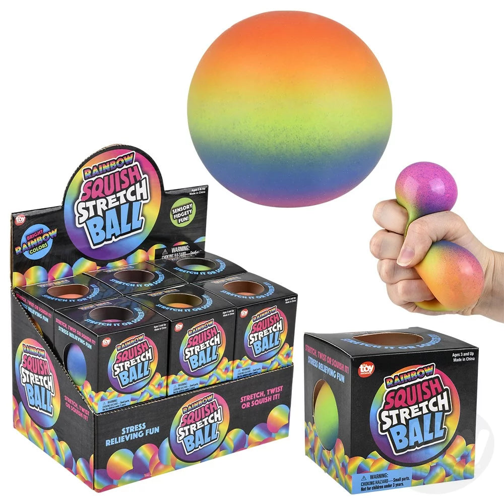 Our 2.5" Squish and Stretch Rainbow Gummi Balls are super satisfying to the touch. These squishy little fidgets are great for stress relief. Each piece in a color box. Sold individually.