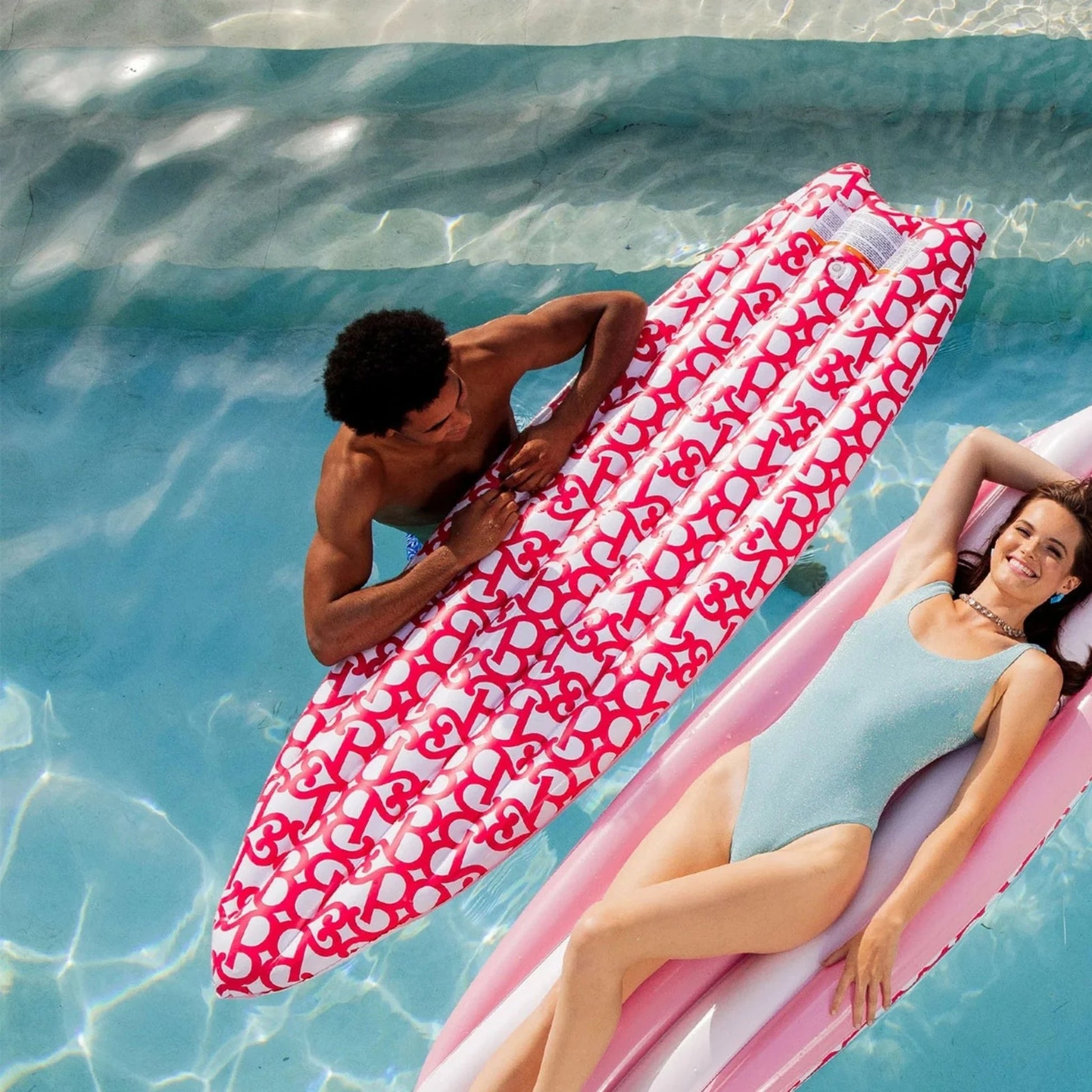 Limited Edition OFFICIAL Barbie The Movie Pool Float. Your very own Barbie Surfboard pool float inspired by the new movie, Barbie. Perfect for lounging, this inflatable surfboard style float is over 6 FT tall!
