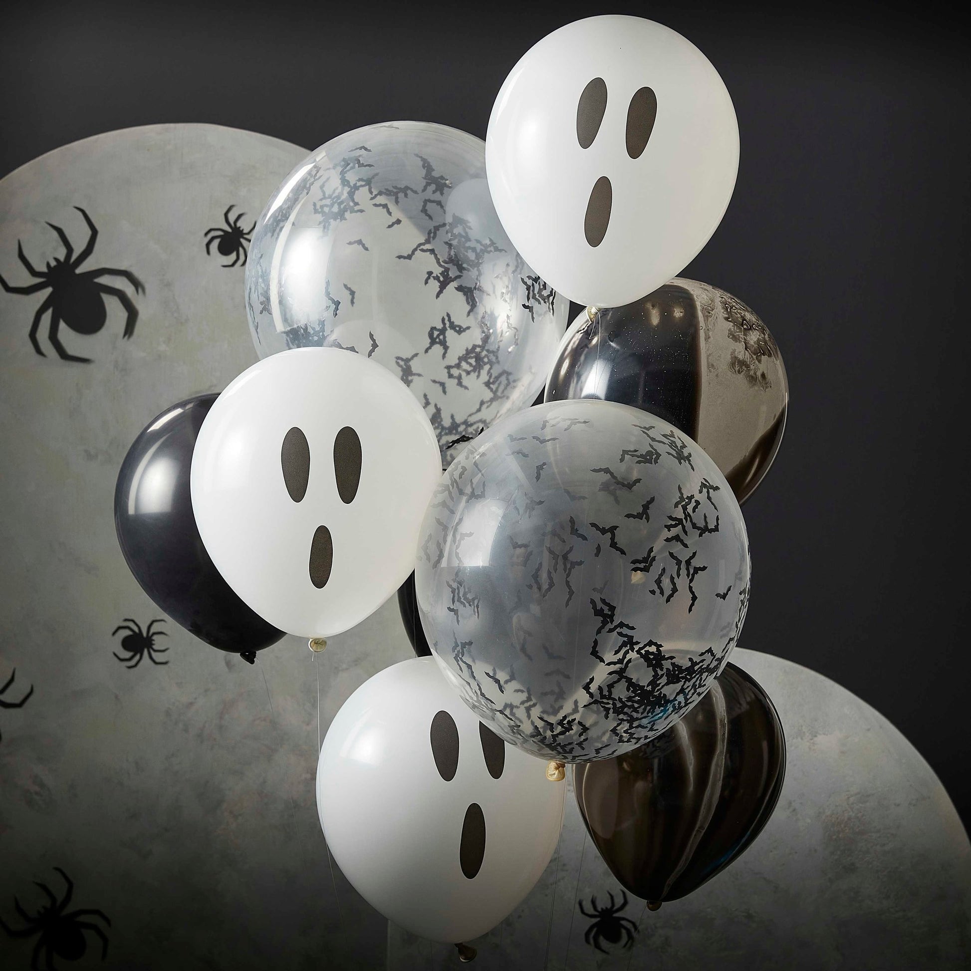 Ghosts, Confetti Bats and Black Marble Halloween Balloon