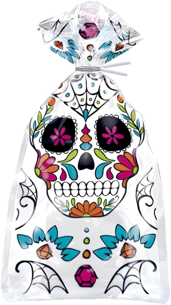 Pack of 20 Cellophane Skull Day of the Dead Halloween Goodie Bags