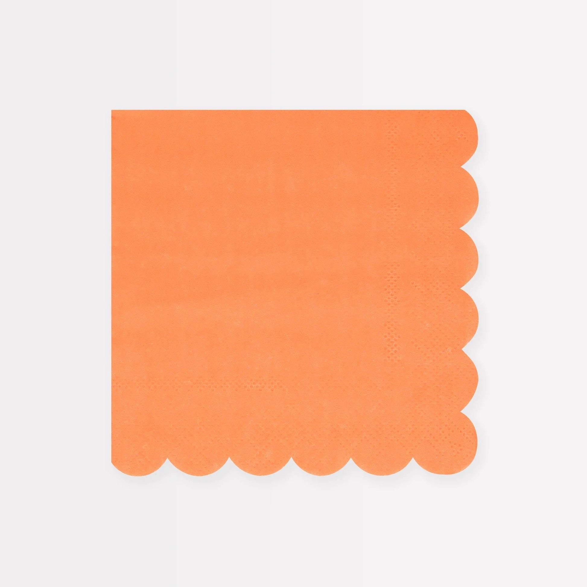 Add a pop of color to your party table with these papaya-colored napkins, with a stylish scalloped edge. They're ideal for any celebration or dinner party where you want an upbeat vibe. These napkins are part of our stylish new take on mix and match tableware.