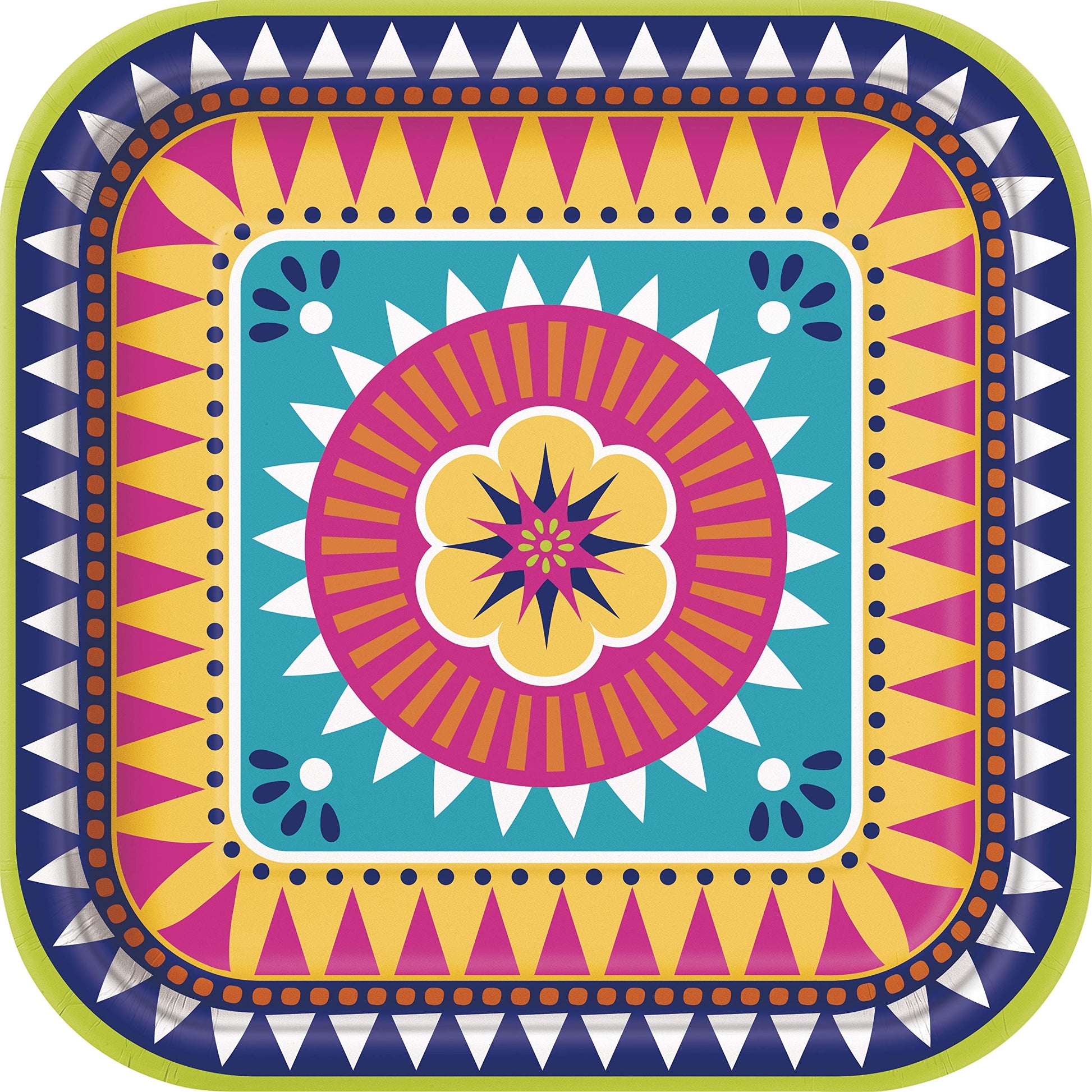 Plato de papel cartón desechables, tema mexicano de 8 unidades