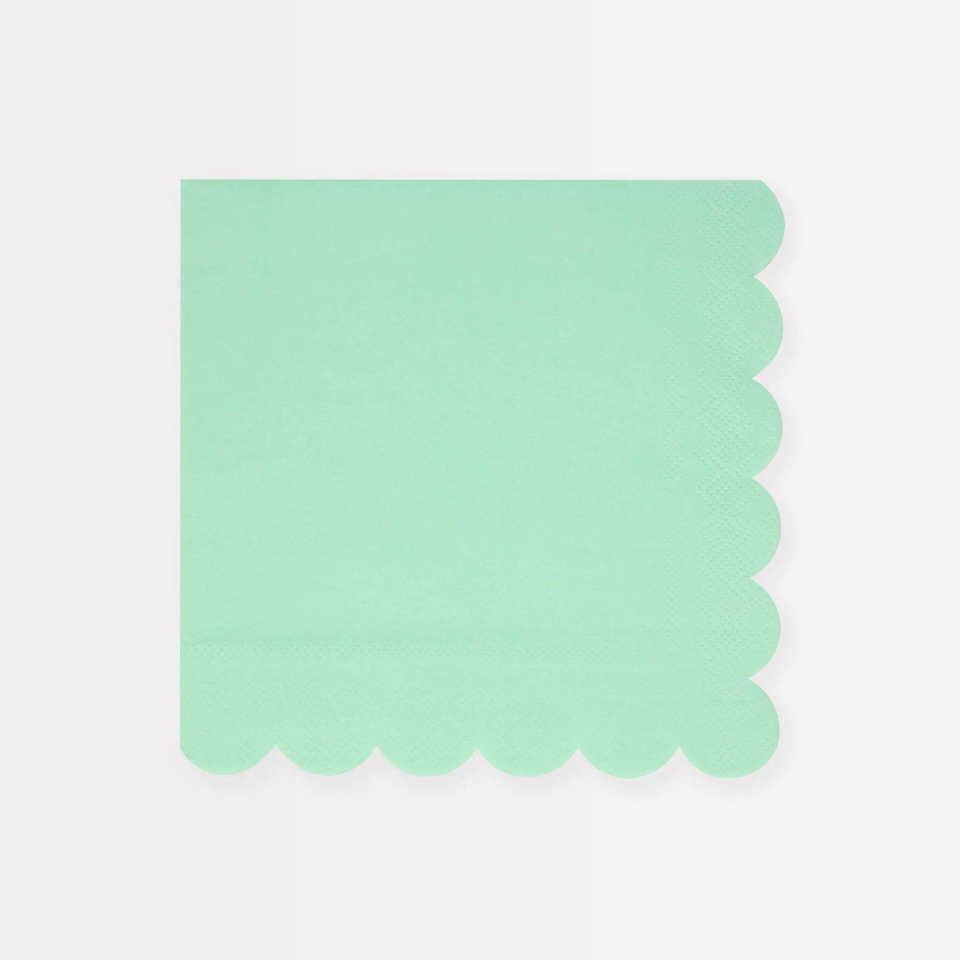 If you're looking to add a pop of color to your party table then you'll love these exquisite sea foam green napkins, with a stylish scalloped edge! They're ideal for any celebration where you want an oceanic vibe, like a mermaid party or under the sea party. These napkins are part of our stylish new take on mix and match tableware.
