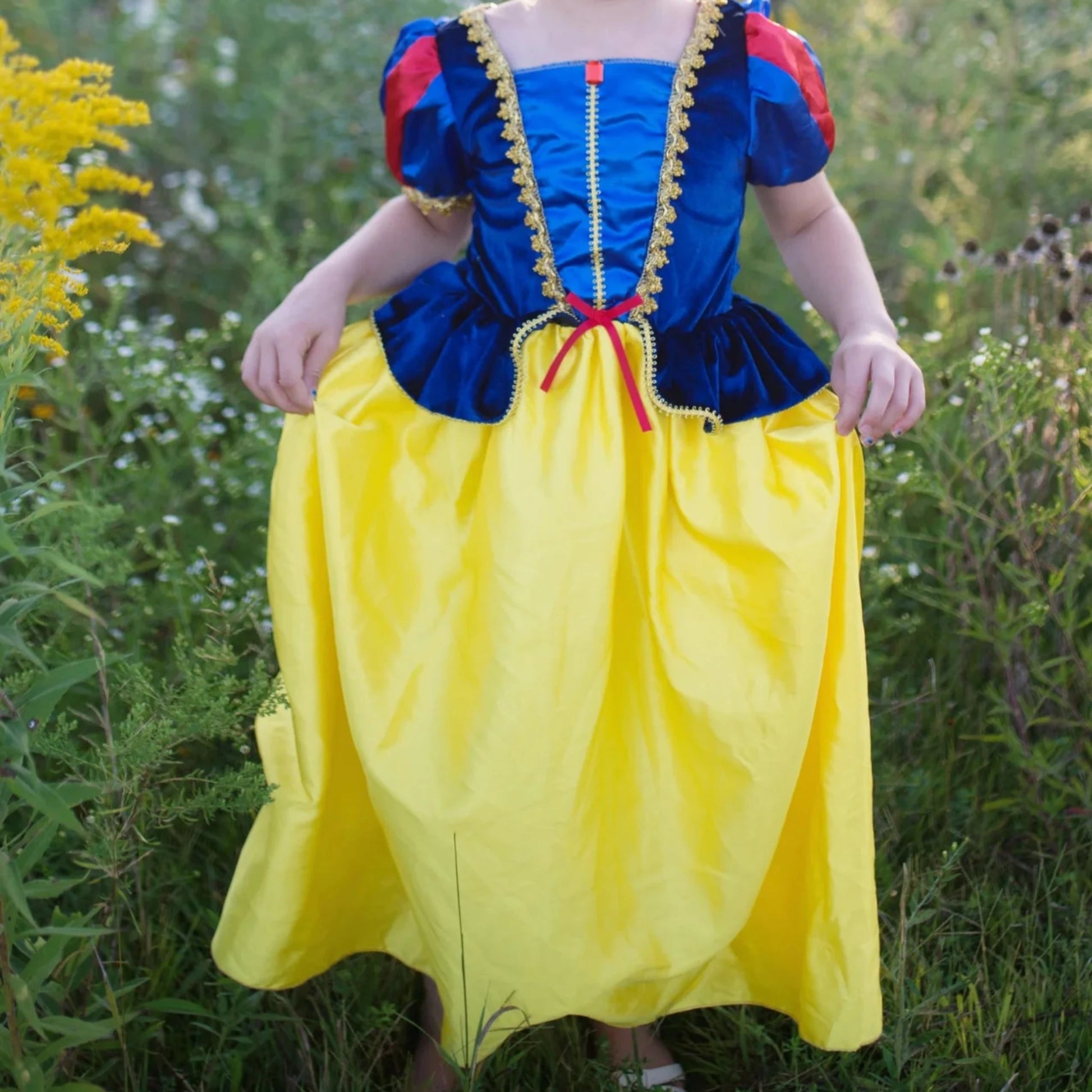 Be the talk of the tea party with this deluxe Snow White-inspired gown. Made with the highest quality fabrics, trims, and accents, this gown features exquisite detailing, beautiful patterns, and layers of rich textiles.