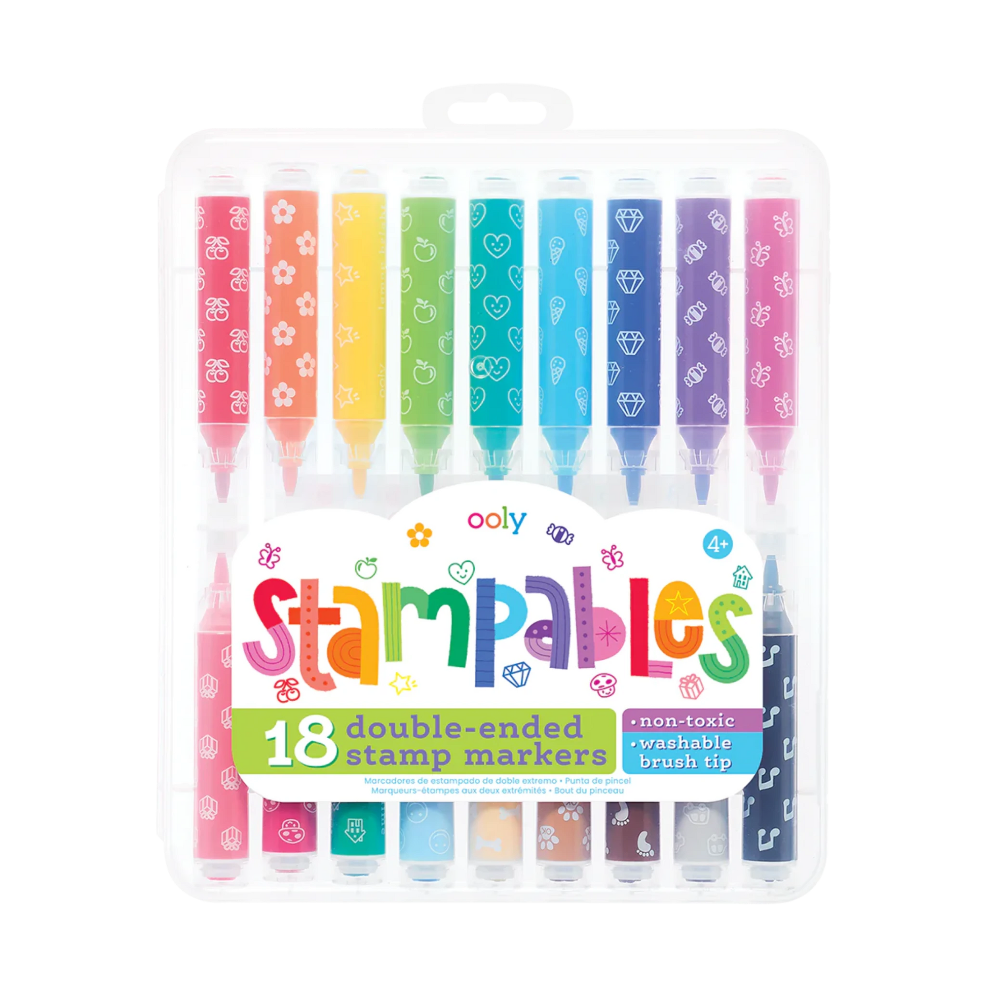 Set of 18 markers with a brush tip on one end and a stamp on the other