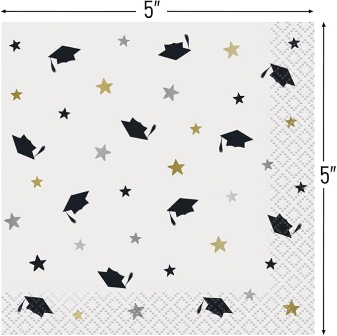 16: With a generous pack of 16 napkins, you'll have a sufficient supply to accommodate all of your guests at the graduation party. The cohesive design across all napkins will ensure a well-coordinated event.